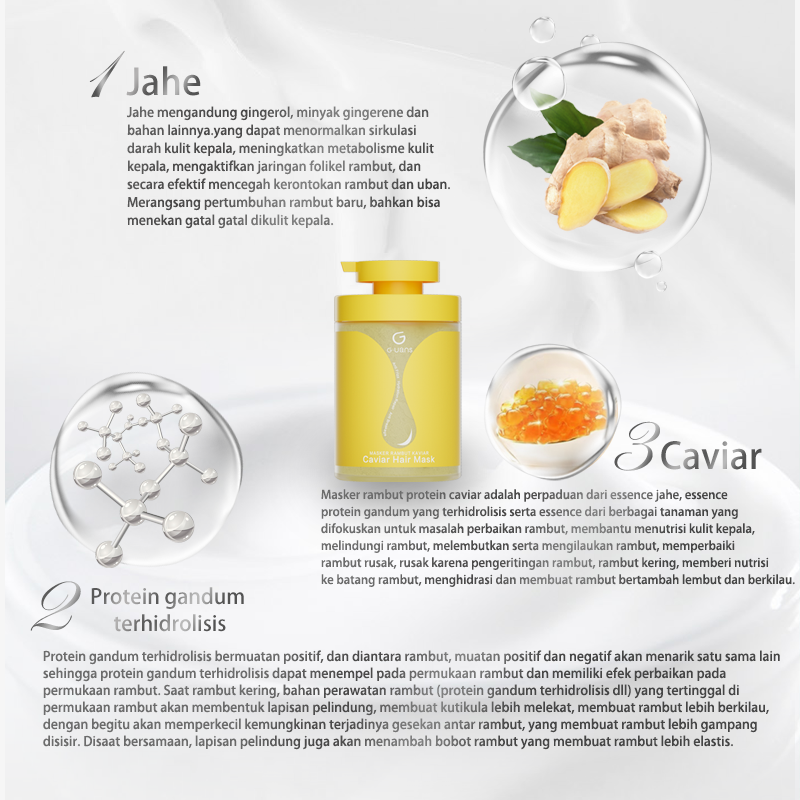 Menggunakan 9 jenis herbal berkualitas, dan melalui proses ekstraksi selama 27 kali, merevitalisasi folikel rambut dengan lebih banyak nutrisi, memperkuat akar rambut, serta menutrisi akar dan ujung rambut. Menguatkan batang rambut memberikan lipid penting ke batang rambut yang kering, membuat rambut lebih berkilau dan lembut.